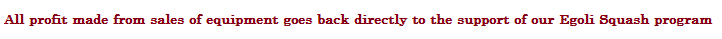 All profit made from sales of equipment goes back directly to the support of our Egoli Squash program.